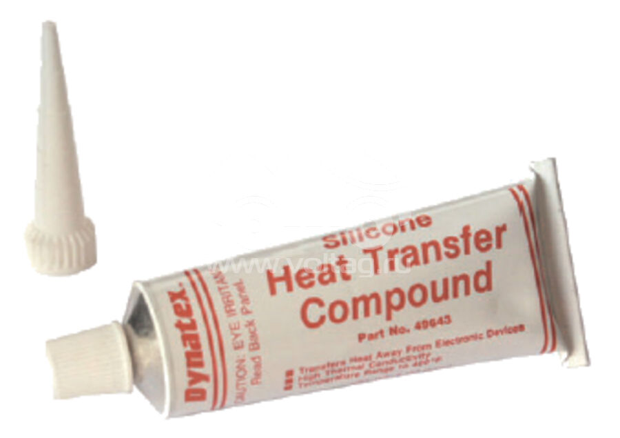Heat Transfer Compound // Heat transfer grease is a grease-like silicone material heavily filled with head conductive metal oxides. This material maintains a positive heat sink seal that transfer from electrical and electronic devices to the heat sink or chassis. Used where heat dissipation is required.